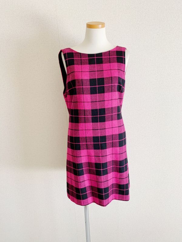 ピンクとブラックのチェックがフェミニンなドレスです。