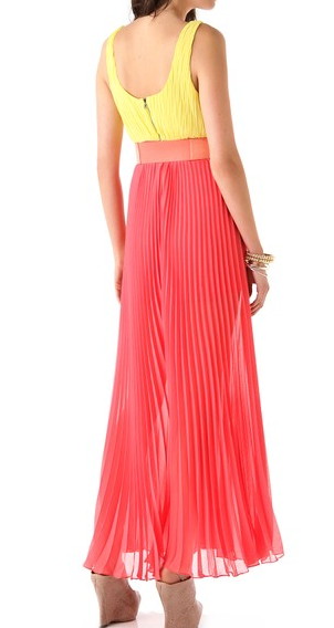 明るいお色のカラーブロックが鮮やかなプリーツシフォンのワイドパンツジャンプスーツです。