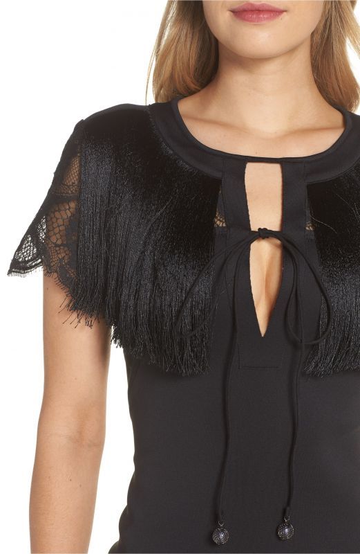 Tadashi Shoji タダシショージ レース&フリンジドレス ブラック