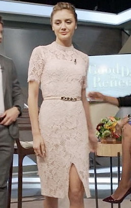 フェミニンな淡いピンクカラーのレースがエレガントなドレスです。