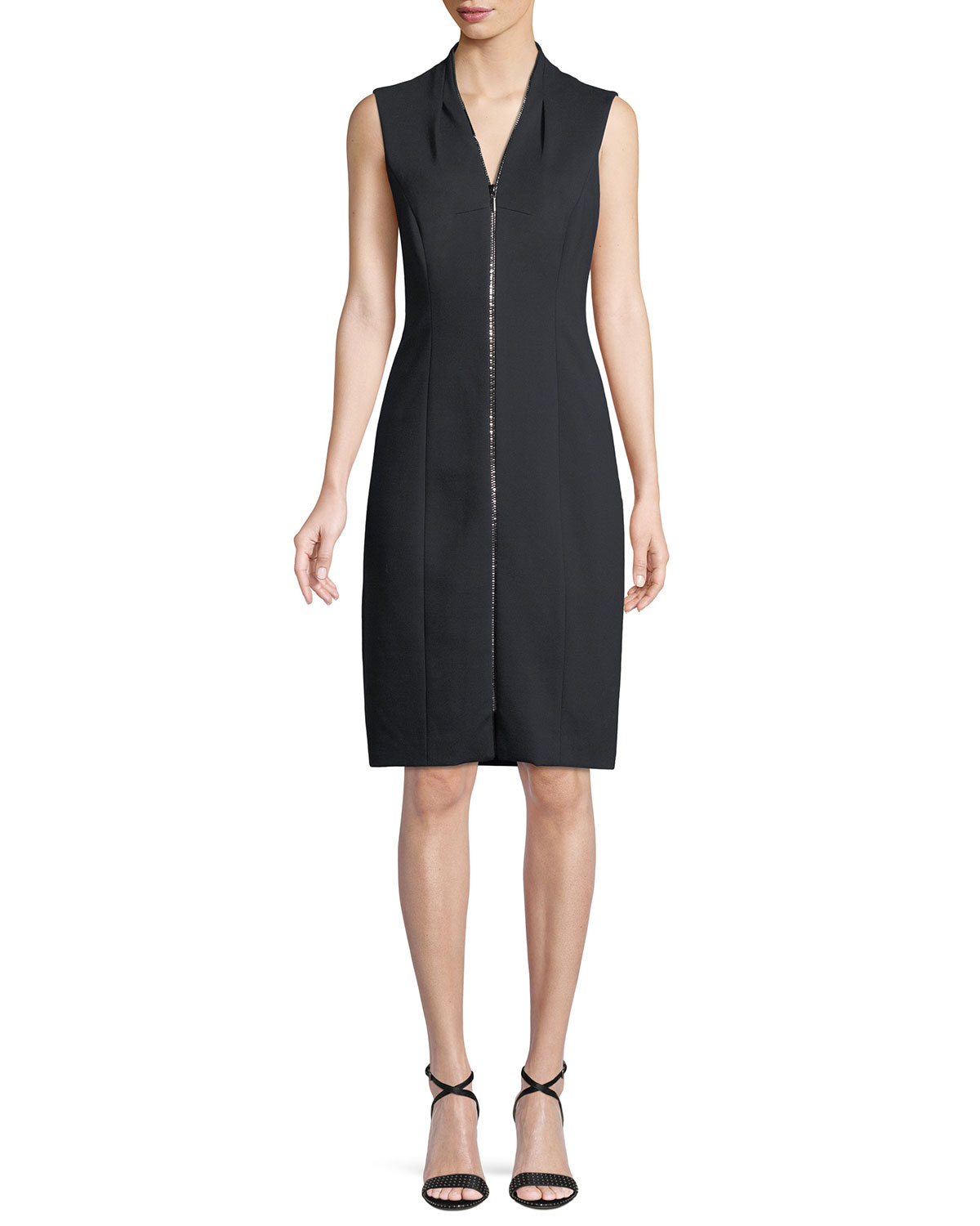 クールなシースドレスにセンターのジッパーが知的でオシャレなドレスです。