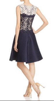 【木佐彩子さん、牧野紗弥さんがご着用】Tadashi Shoji タダシショージ Lace Mixed-Media Flared Dress ネイビー系