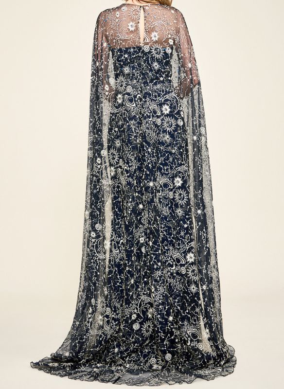 Tadashi Shoji タダシショージ Bourne Sweeping Cape Gown ネイビー系