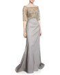 Tadashi Shoji タダシショージ Off-the-Shoulder Elbow-Sleeve Taffeta Gown グレー、シルバー系