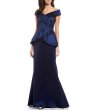 セール!Tadashi Shoji タダシショージ オフショルダーペプラムロングドレス ネイビー系
