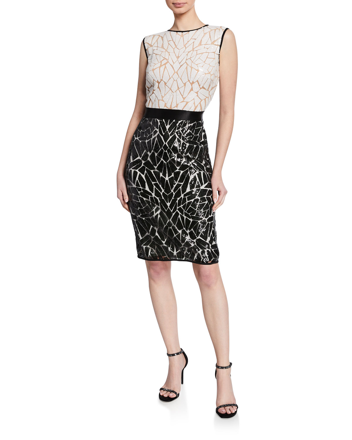 ホワイトとブラックのスパンコールがゴージャスなカクテルドレスです。