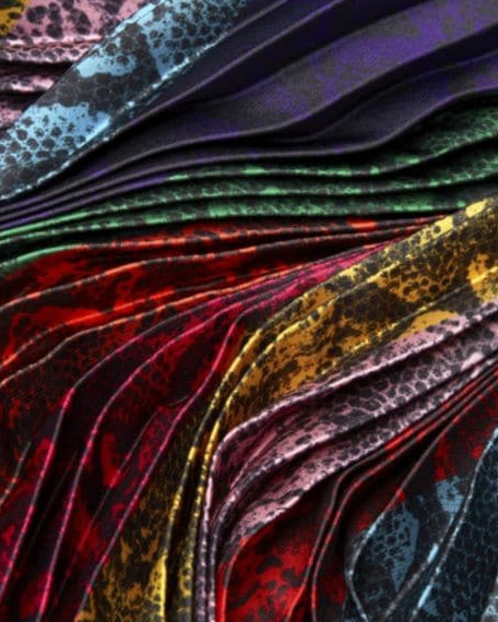 個性的なスネーク柄にカラフルなレインボーストライプが斬新なワンピースです。