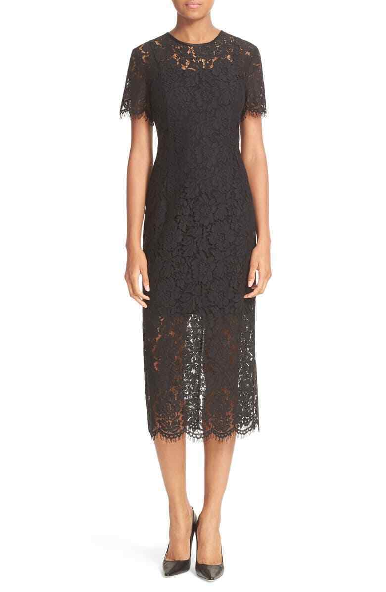 ミディアム丈で落ち着いた印象のブラックドレスです。