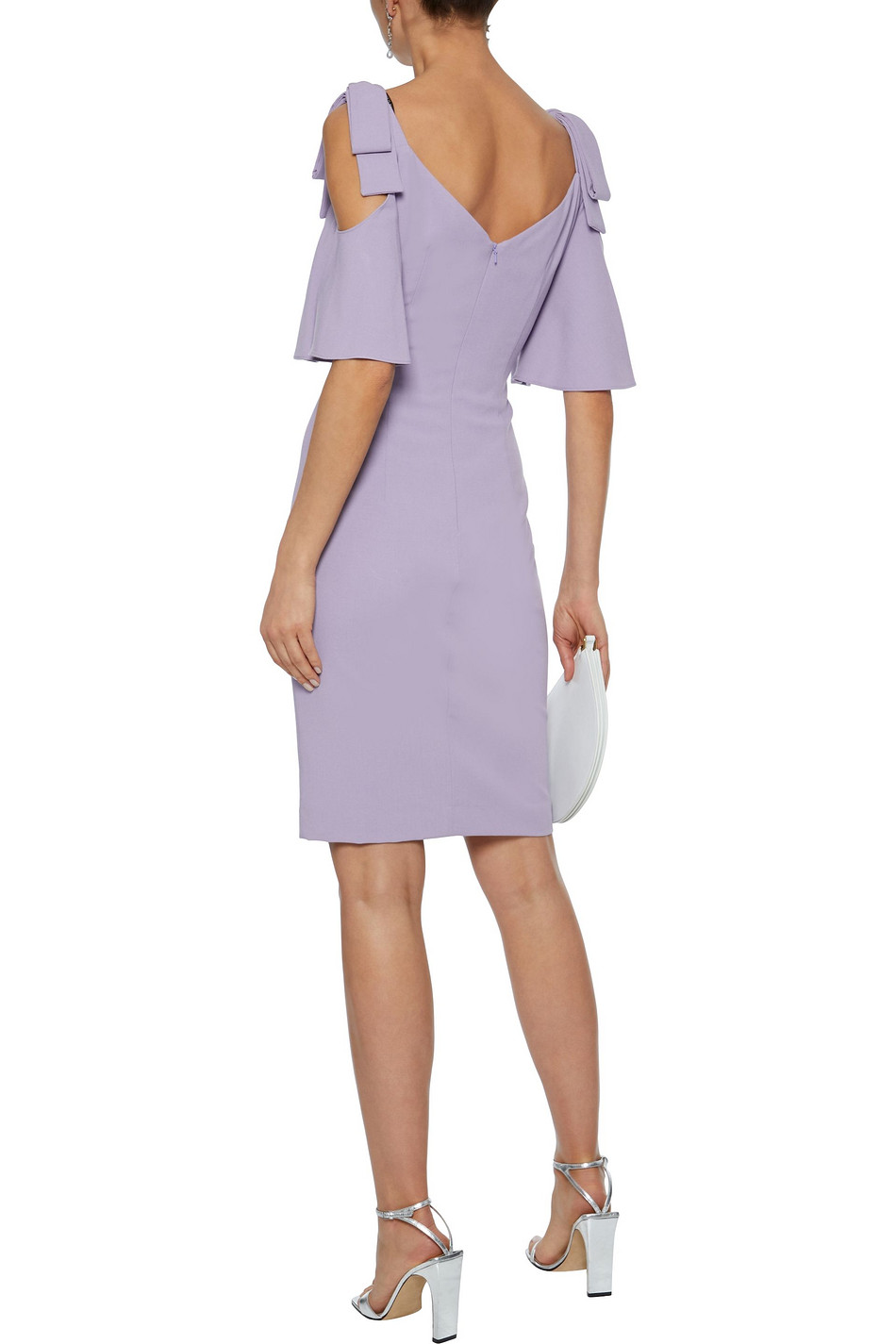 フェミニンな肩のリボン付きのコールドショルダーがオシャレなドレスです。