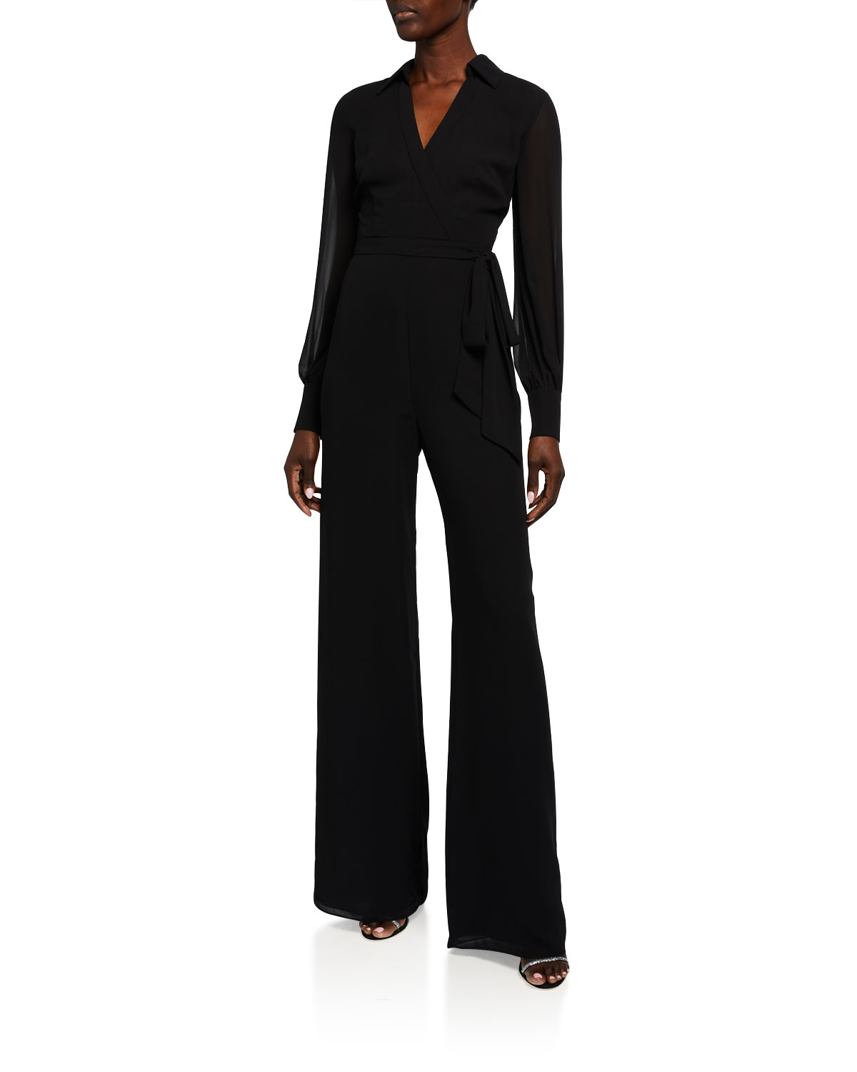 シースルーのお袖にVネックがクールな印象のジャンプスーツです。
