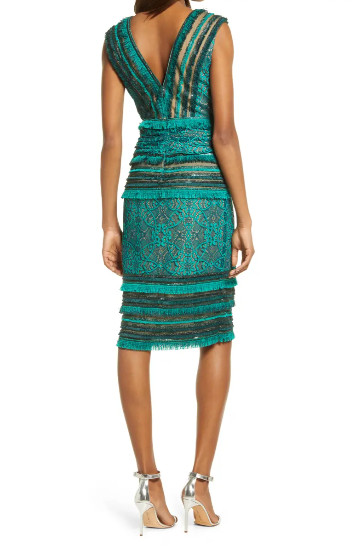 Tadashi Shoji タダシショージ Lace & Fringe Sheath Dress グリーン系