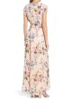 優しいピンクカラーに手描き風の大きな花柄が美しいロングドレスです。