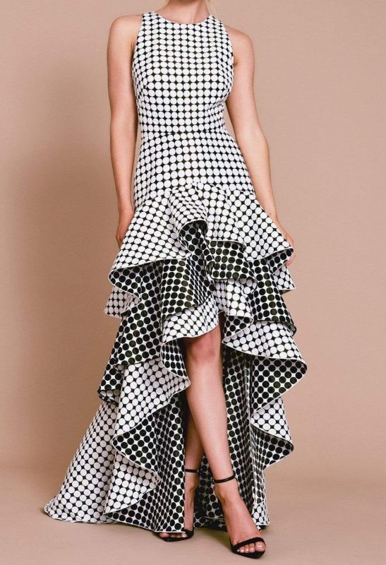 セール!Tadashi Shoji タダシショージ BRILL HIGH-LOW JACQUARD DRESS ブラック、ホワイト系