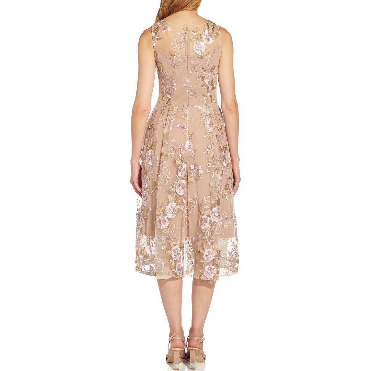 Adrianna Papell アドリアナパペル Embroidered Sleeveless Party Midi Dress