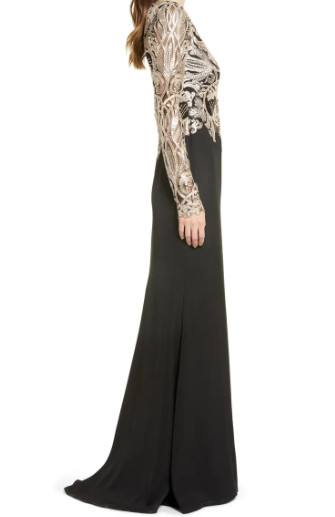 Tadashi Shoji タダシショージ スパンコールトップロングスリーブドレス ブラック、ゴールド系