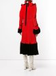 鮮やかな赤のプリーツドレスに、黒のパイピングが際立つデザインです。