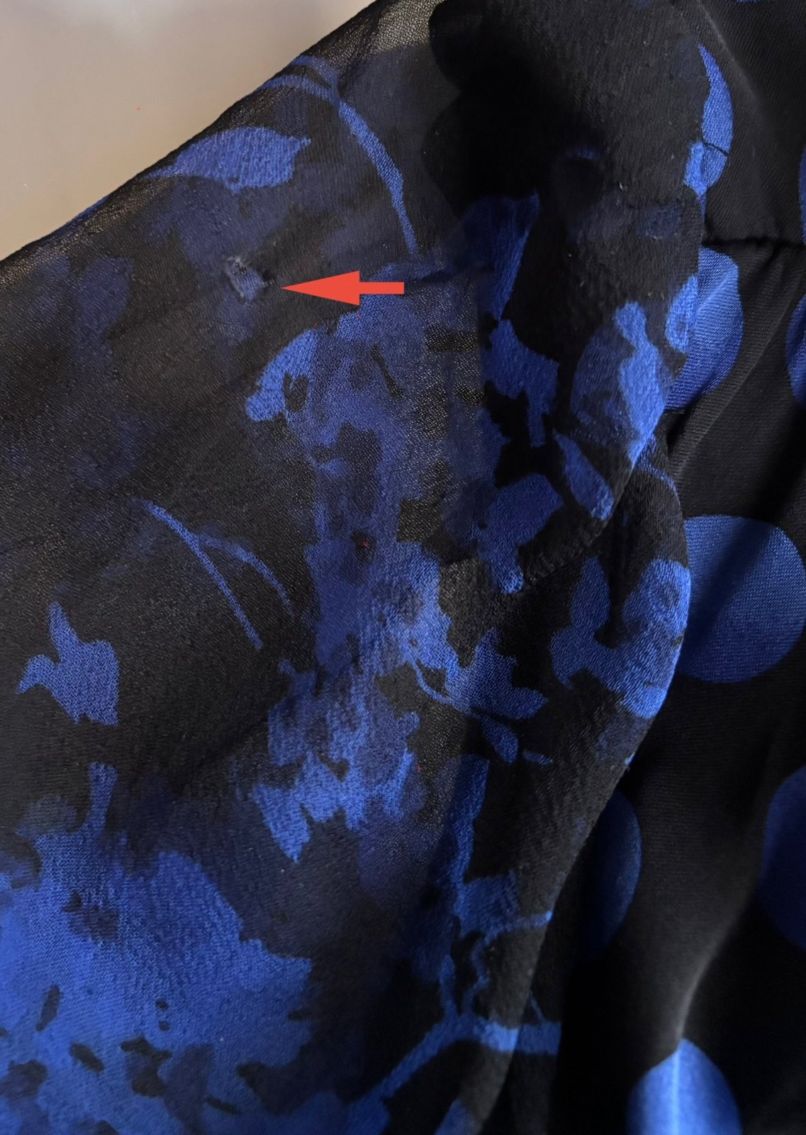注;)右肩付近、シースルー部分に小さな綻び穴がございます。