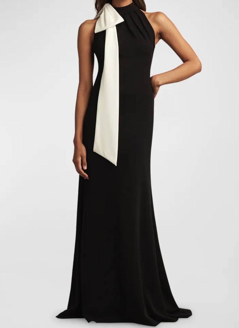 Tadashi Shoji タダシショージ SIMS SHOULDER BOW HALTER GOWN ブラック、アイボリー 01113
