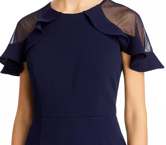 Eliza J イライザジェイ Sheer Ruffle Shoulder Maxi Dress ネイビー