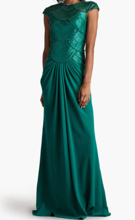 Tadashi Shoji タダシショージ CORALIA BEADED CREPE GOWN グリーン系 11093