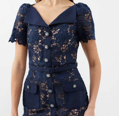 セール!Self Portrait セルフポートレート Crystal-embellished guipure-lace midi dress ネイビー 03052