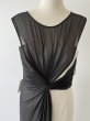 オフホワイトのサテンドレスに、ブラックメッシュをを重ねたエレガントなカラーブロックドレスです。