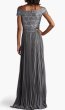 セール!Tadashi Shoji タダシショージ Bode スパンコールレースプリーツドレス シルバー系 [13192]