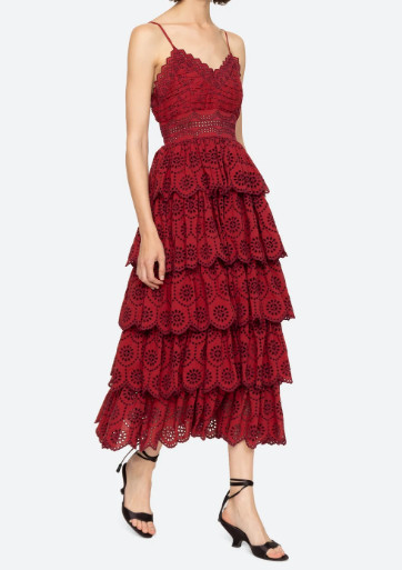 アイレットレースに、ティヤードスカートが上品な印象です。