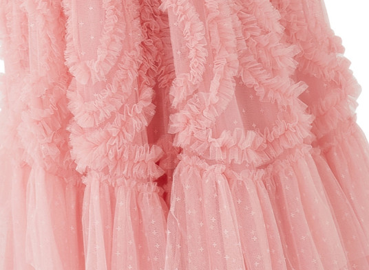 遊び心のあるチュールのデコレーションがフェミニンなドレスです。
