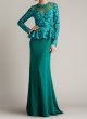 限定セール!Tadashi Shoji タダシショージ Lata Embroidered Belted Peplum Gown グリーン