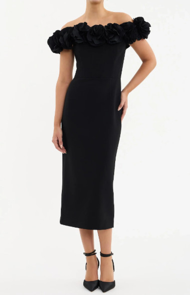 セール!Rebecca Vallance レベッカヴァランス Odetta フローラルアップリケミディドレス ブラック 02241