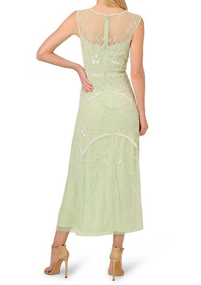Adrianna Papell アドリアナパペル Beaded Mesh Sleeveless A-Line Midi Dress 04041