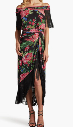 Tadashi Shoji タダシショージ Kaiser Floral Fringe Midi Dress ブラック、ピンク系