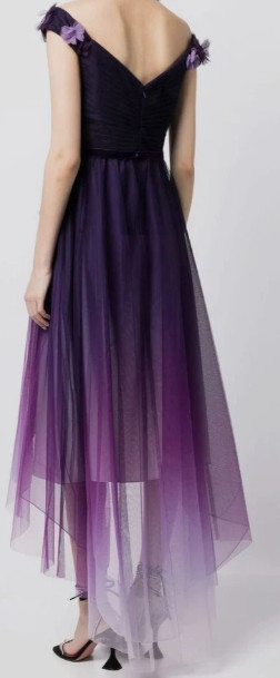 セール!Marchesa Notte マルケッサノッテ オフショルダーアップリケチュールドレス パープル 06261