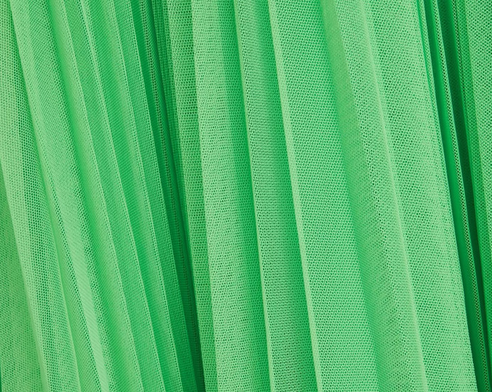 明るいグリーンのプリーツシフォンが美しいワンショルダードレスです。