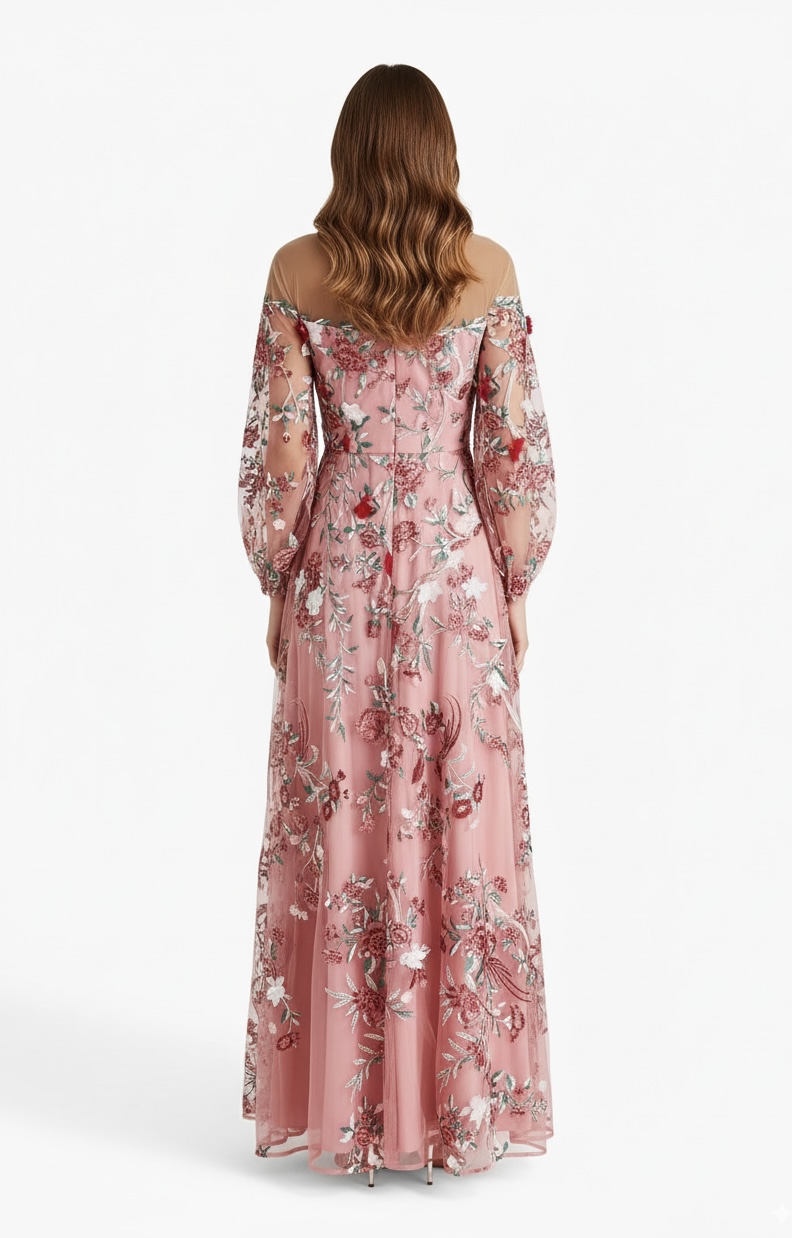 1点のみ即発!Marchesa Notte マルケッサノッテ 花柄刺繍チュールロングドレス 05044