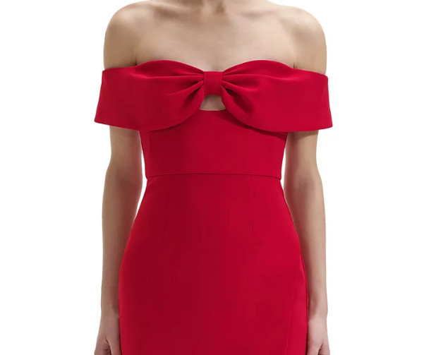オフショルダーにフェミニンな胸元のリボンが素敵!