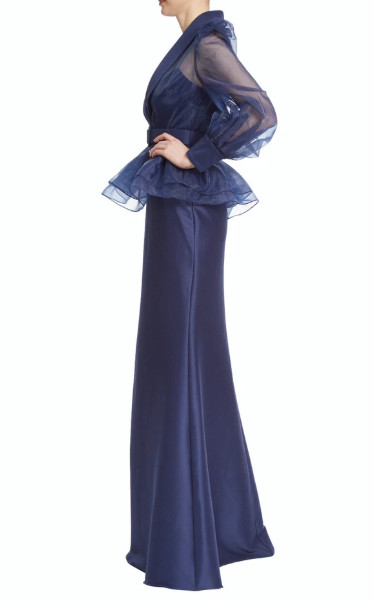 セール!Badgley Mischka オーガンジーペプラムドレス