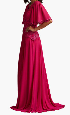 サイドやお袖のメッシュレースパネルがエレガントなロングドレスです。