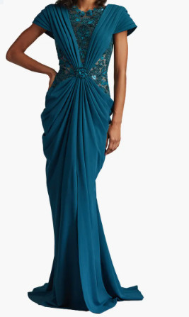 Tadashi Shoji タダシショージ Julina Draped Overlay Embroidered Gown ブルー、グリーン系