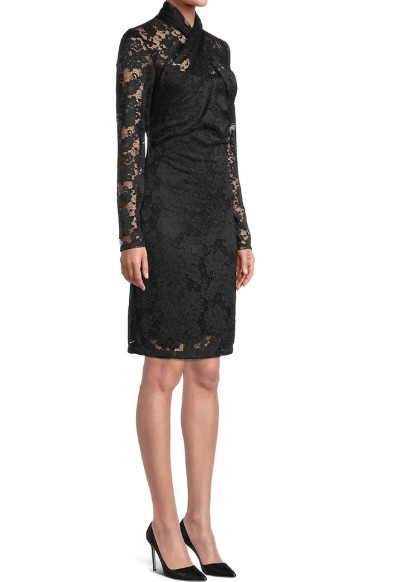 ニューヨーク発の洗練ブランド〈Elie Tahari(エリータハリ)〉のクラシカルでありながらモダンな印象のブラックレースドレス。
