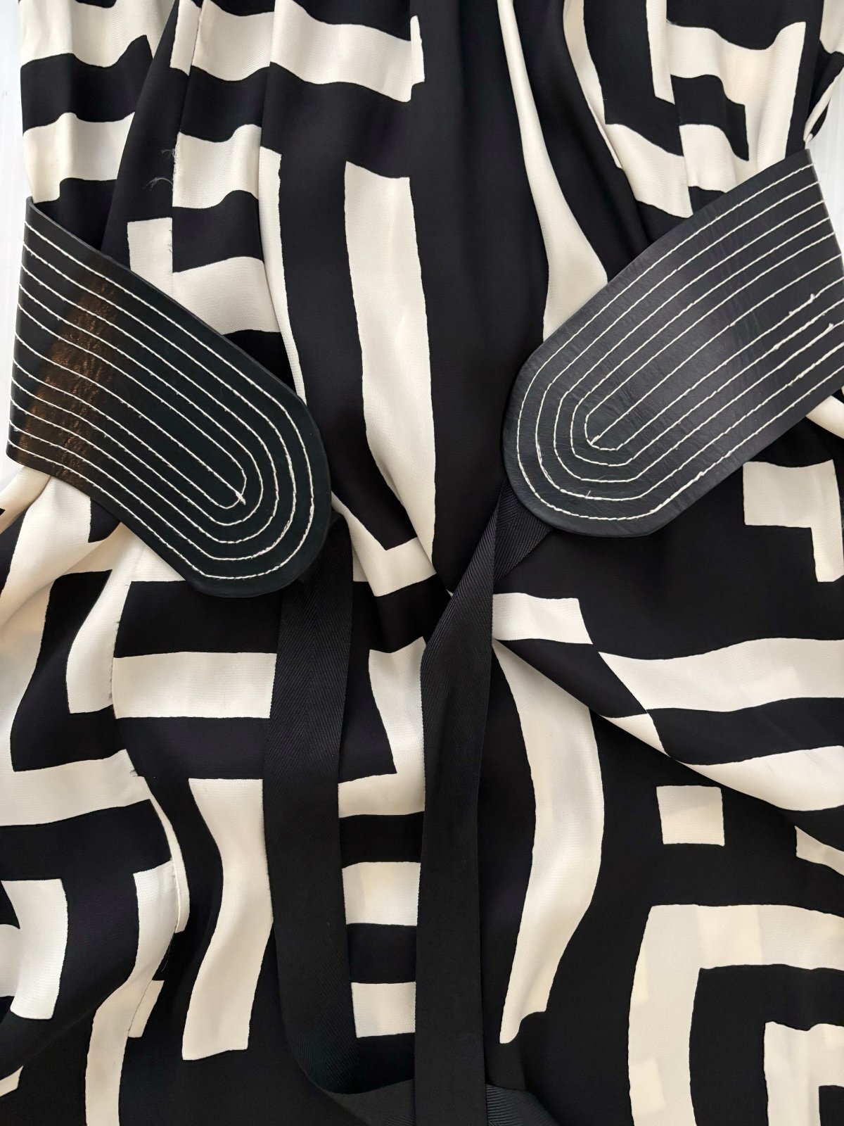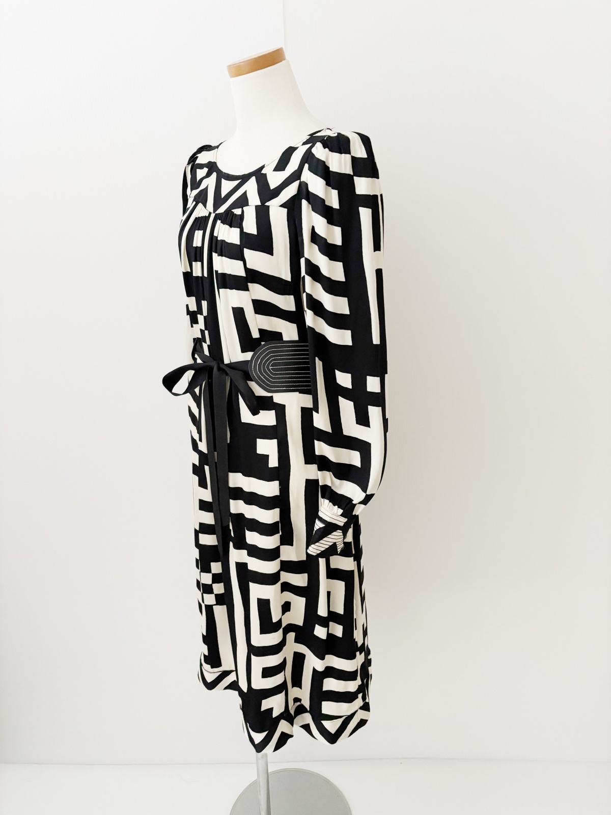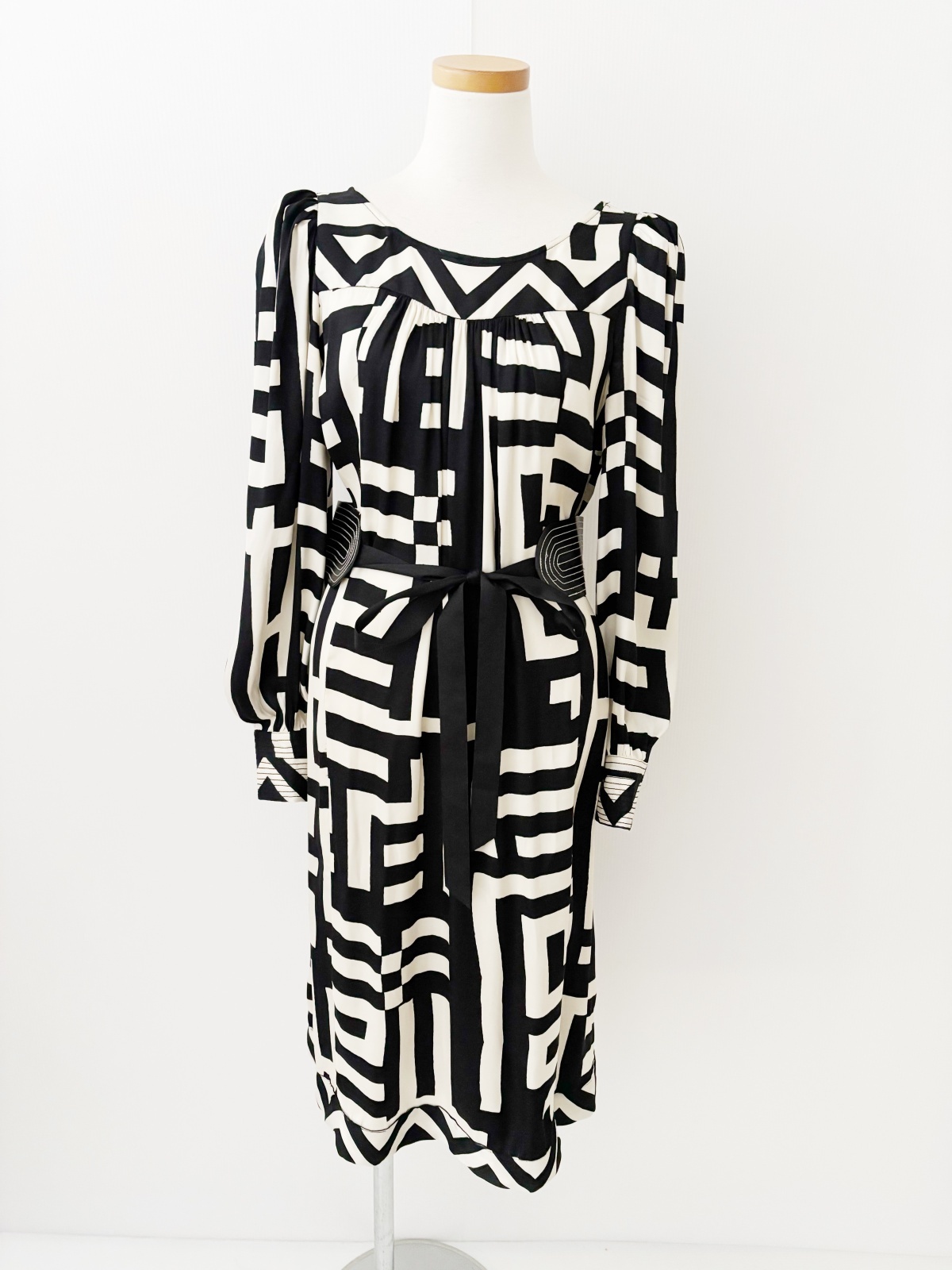 セール【ドラマ衣装提供】Tracy Reese トレイシーリース ベルト付きブラック&ホワイトドレス [13903]