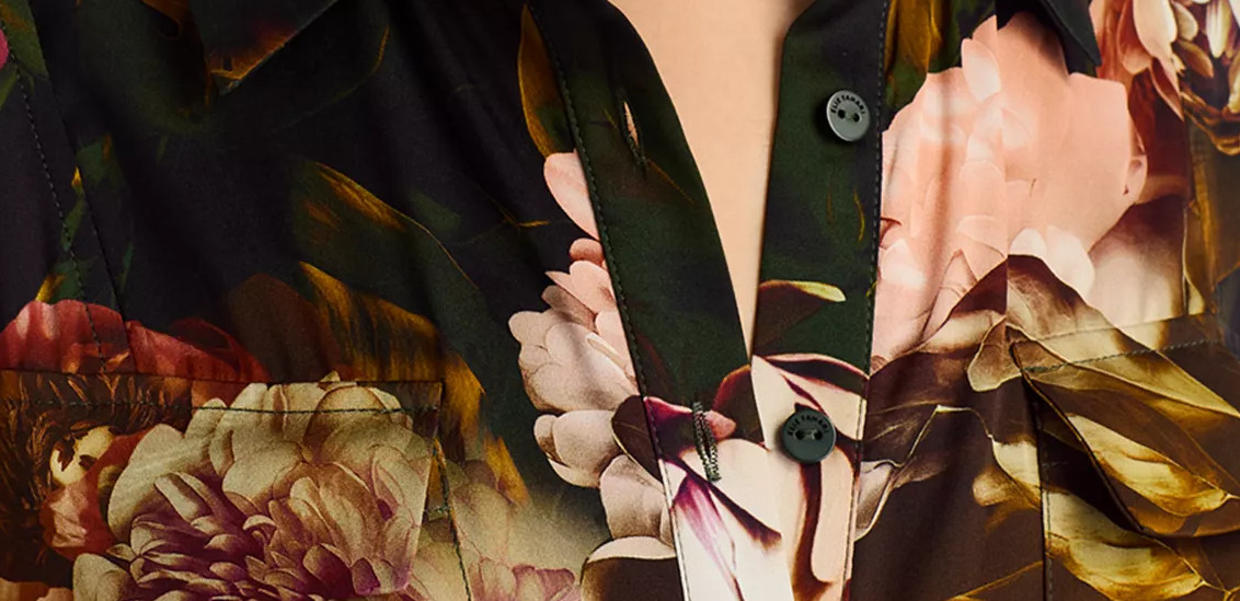 落ち着いた配色と大判フラワーが優雅に映え、知的かつエレガントな印象を叶える、Elie Tahariらしいタイムレスな一着です。