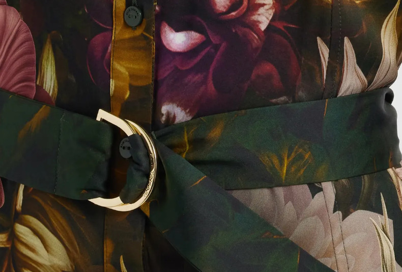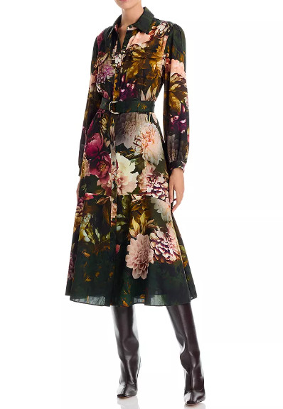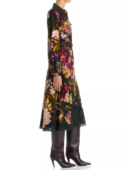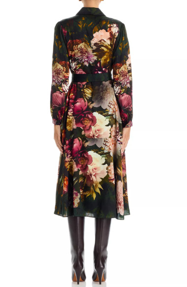 ニューヨーク発の洗練ブランド〈Elie Tahari(エリータハリ)〉の、華やかさと知的さを兼ね備えた“Milra”ベルト付き長袖花柄シャツドレス。深いグリーンをベースに、立体感あふれるエレガントなフローラルプリントを施し、大人の女性にふさわしい上質な存在感を演出します。軽やかで滑らかなシルク素材がしなやかに揺れ、心地よいフィット感と美しいドレープを両立。
