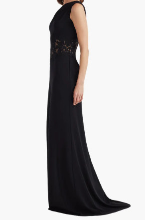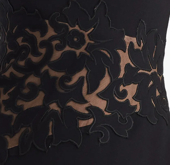 流れるような落ち感を生み、身体のラインをすっきりと美しく見せてくれる一着です。ウエスト周りには繊細なイリュージョンレースをあしらい、適度な肌見せと立体感をプラス。シックなブラックに浮かび上がるレースの陰影が、大人の女性らしいエレガンスと華やぎを演出します。ミニマルなシルエットの中に、タダシショージらしい上品なディテールが散りばめられ、360度どこから見ても美しいバランスに仕上がっています。