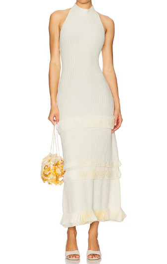 【TWICEモモ着用】Alexis Ines オフホワイトドレス|高級ニット・フォーマルパーティードレス