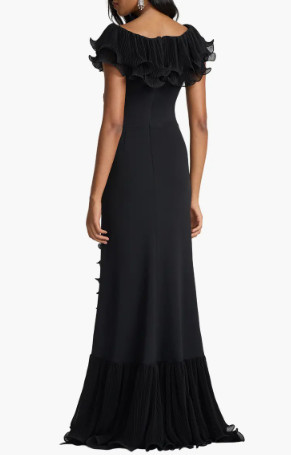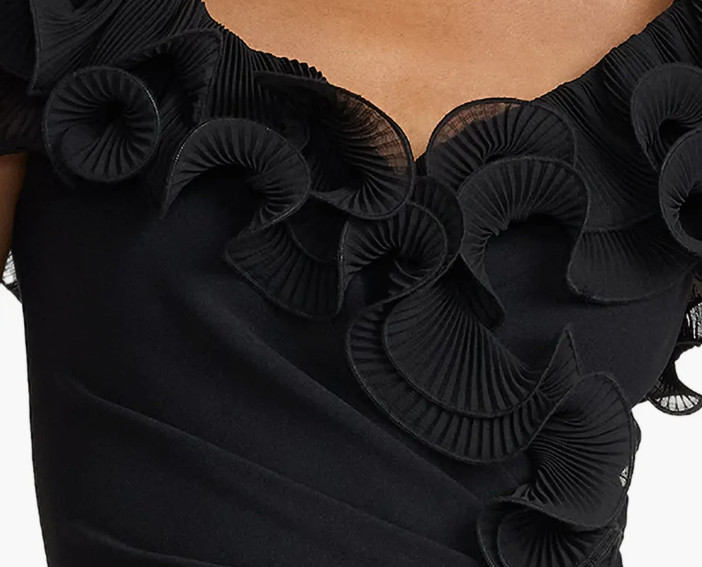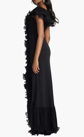 Tadashi Shoji Leandra カスケードラッフル ロングドレス|エレガントフォーマル ブラック