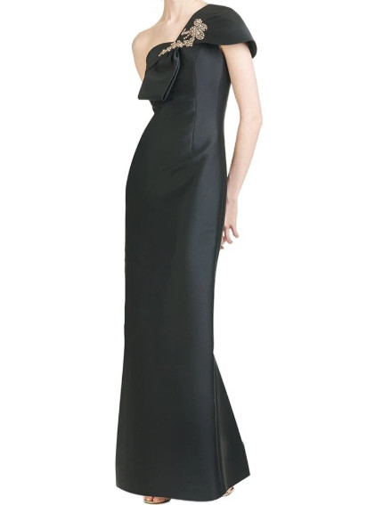 Sachin & Babi ワンショルダーリボン ロングドレス|フォーマル・イブニング対応|ブラック