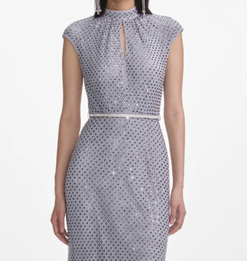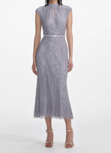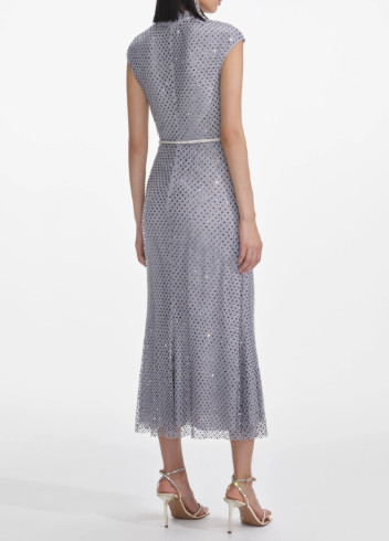 Self Portrait フィッシュネット ラインストーン ミディドレス|グレー パーティードレス