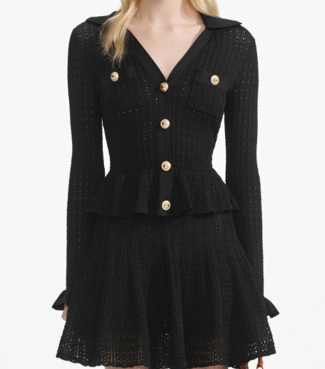 Self-Portrait Vネック ニットミニドレス|ポインテール編み ブラック パーティー対応